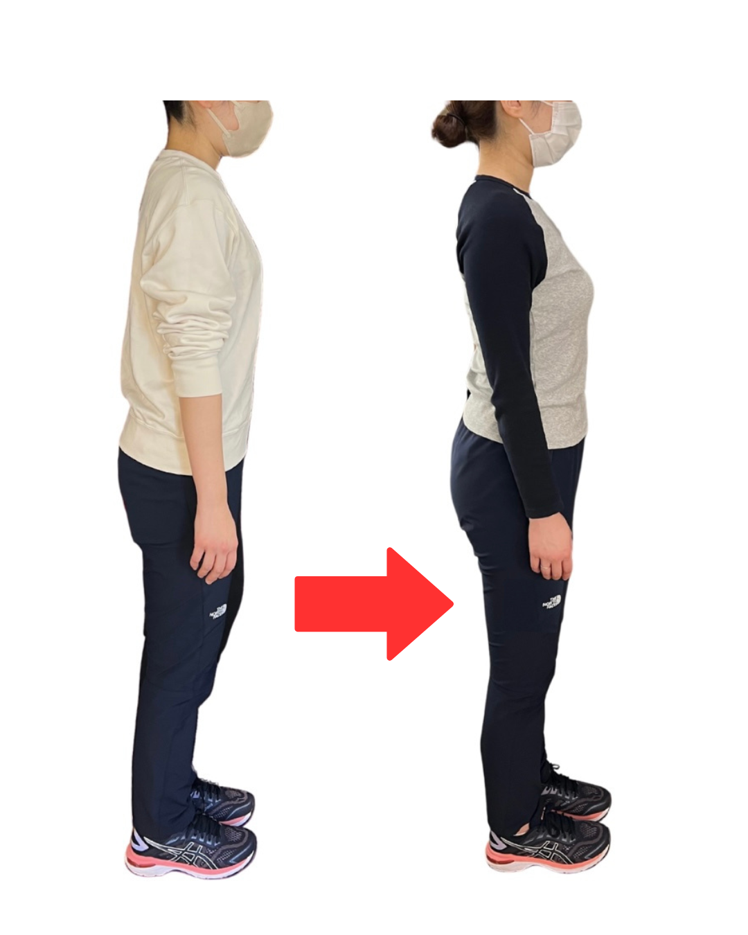 普段私はデスクワーク中心で、姿勢も前かがみになりやすいですが、トレーニングを積み重ねることにより、背すじがまっすぐになりました。そして、おしりの引き上げ、二の腕、背中など、始める前とかなり変化しました。人からも変わったねと言われました。